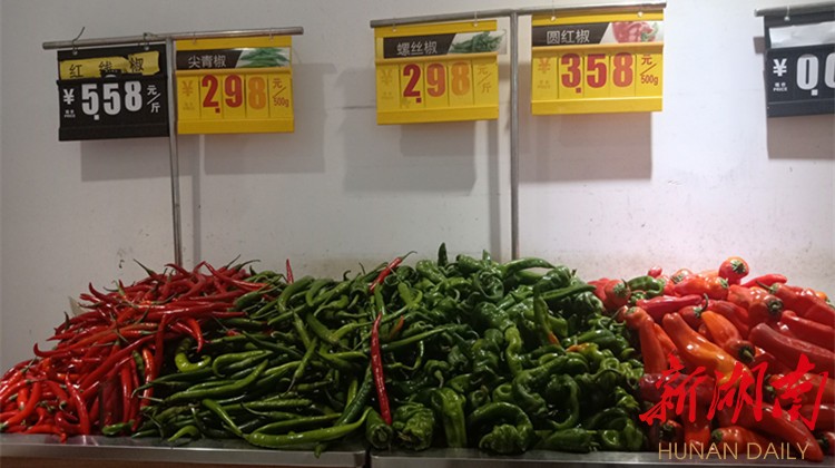 1月3日下午,在长沙伍家岭某大型超市,市民正在选购蔬菜。菜价显示,湖南人最喜欢吃的辣椒价格在3元至3.5元左右每斤。记者 陈月红 摄