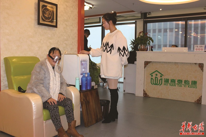 长沙首家氢气体验中心,消费者在接受“氢气”养生体验。