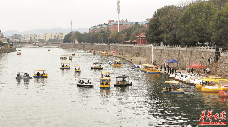 2月25日,市民在宁远县城泠江划船游玩。近年来,宁远县大力实施“治理母亲河 保护湘江源头”项目,泠江河道周边环境由“脏乱差”向“生态宜居”转变、水质由“污水”向“净水”转变,成为人们休闲的好场所。乐水旺 摄
