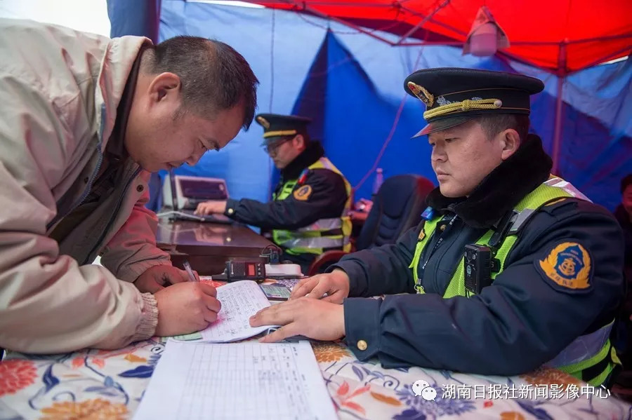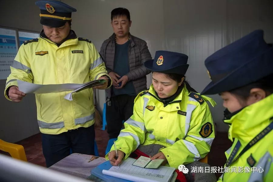 2月22日,新晃320国道春运交通安全检查服务站里,执法人员认真检查车辆牌证和驾驶员从业资格是否符合规定并进行登记。