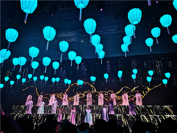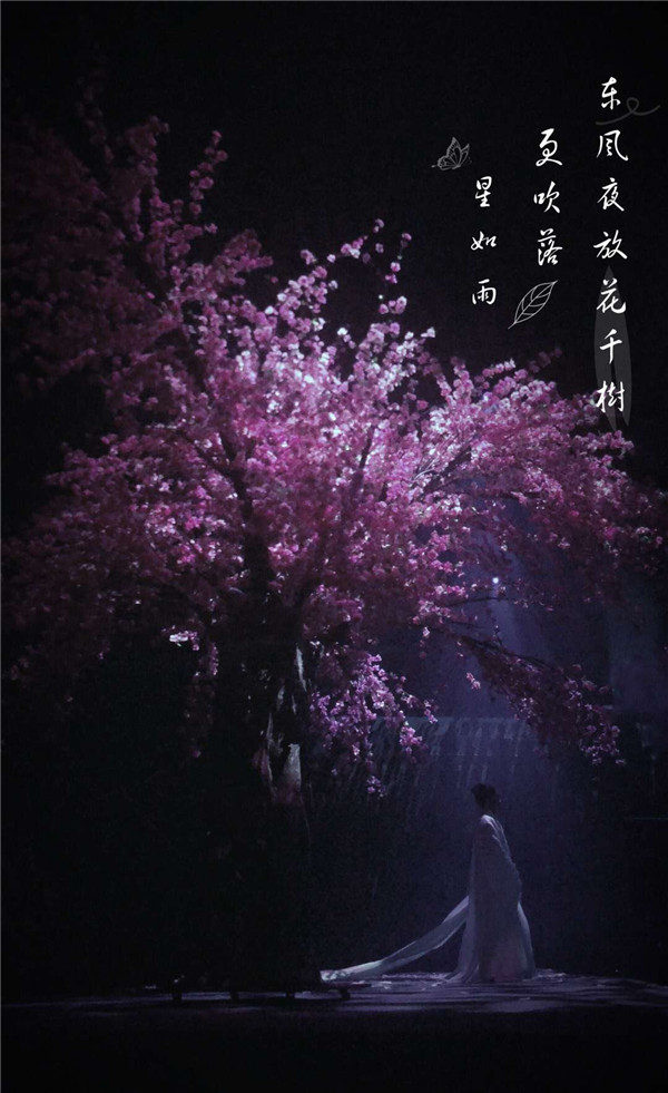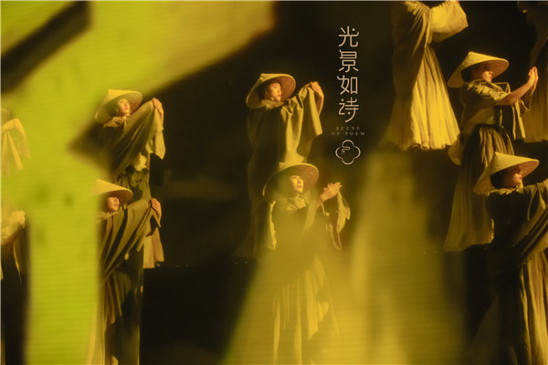 《光景如诗》以唐诗宋词为主题,共分为《诗境》《月下》《山河》三个篇章,重点营造了一种“诗与远方”的意境。现场的观众可以根据诗词意境,实现天马行空的想象,置身李白、李清照、王维、白居易等“编剧”的场景中,如临现场进行千年对话,有一种穿越的错觉。
