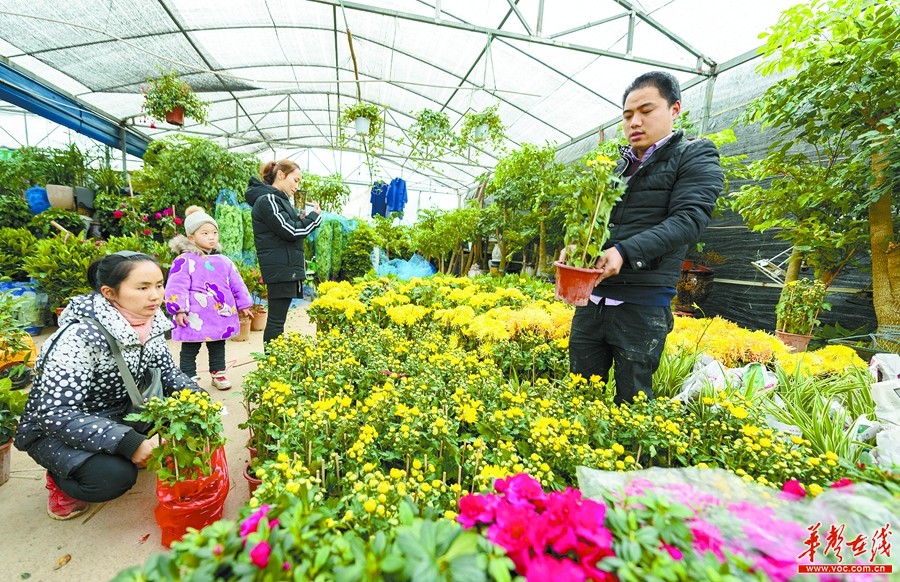 2月13日,吉首市乾州农贸市场,市民在选购花卉。新春伊始,当地花卉、苗木市场迅速升温,前来选购花草的群众络绎不绝,市场呈现花木俏销的热闹场面。张术杰 摄
