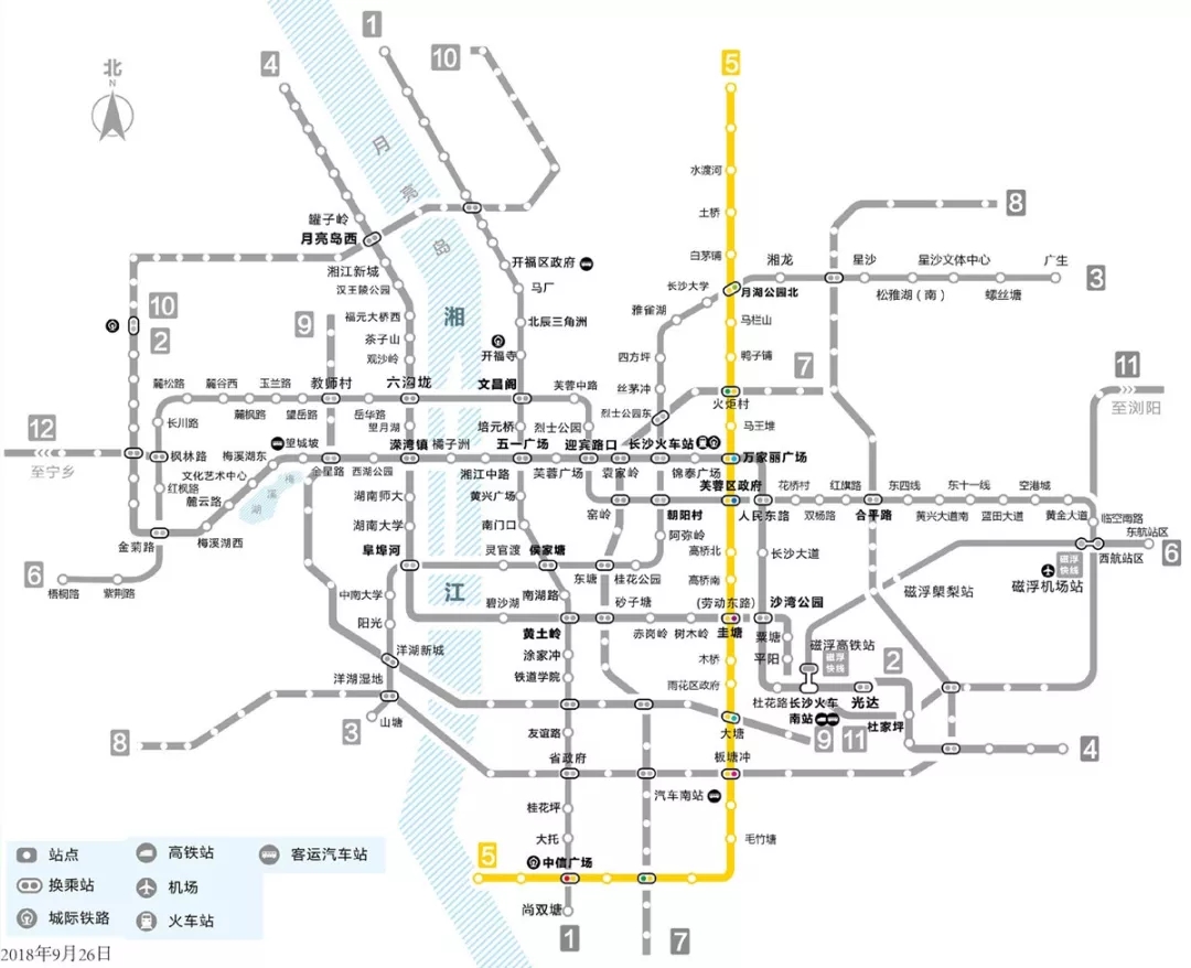 对于5号线的南、北向延线,市轨道交通集团回复,根据2017年3月国家发改委批复的《长沙市城市轨道交通第三期建设规划(2017-2022年)》,5号线南延工程自大托东站至时代阳光大道站,线路长度为8.43公里,设站7座,规划建设期为2018-2022年。