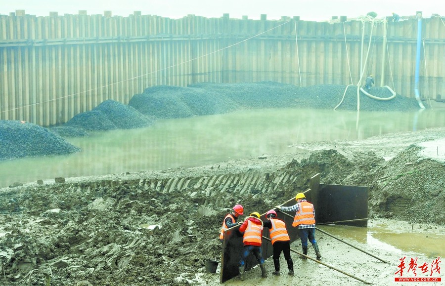 2月9日,长沙湘江东岸防洪综合改造工程项目(橘子洲大桥北侧段)建设现场,施工人员在搭建挡土墙。为确保在汛期来临前完成涉水主体工程,该项目部200余名工作人员放弃春节与家人团聚的机会,奋战在施工一线。