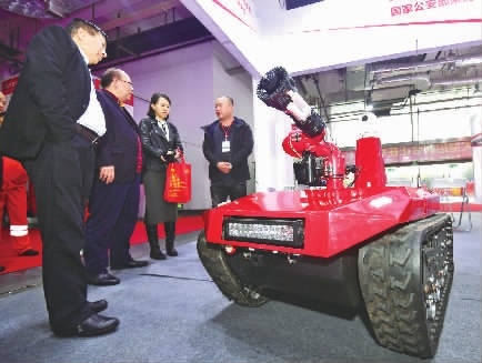 3月28日,长沙红星国际会展中心,观众参观一款消防机器人。当天,由湖南省紧急救援协会主办的“2019年长沙消防安全技术应急救援装备展览会”开展。展会为期3天,共有200余家企业参展。本次展会是我省消防应急行业的第一个专业性展览会。