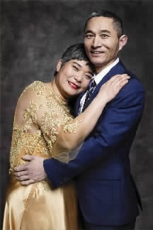 走进工地简易摄影棚的,还有婚龄27年的雷建军、陈建敏两口子。