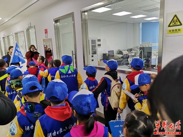 来自长沙县百熙二小的湖南日报小记者们参观国家城市供水水质监测网长沙监测站。