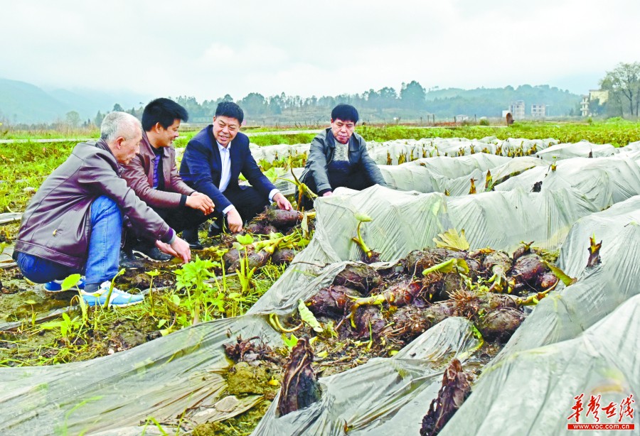 3月18日,蓝山县毛俊镇毛俊村,全国人大代表、毛俊村党支部书记廖仁旺(右二)在向村民宣讲全国两会精神。从北京参加全国两会归来后,廖仁旺走村串户、深入田间地头,通过村民代表会、议事会、上门走访、田边恳谈等形式,向基层党员、干部和村民宣讲两会精神。