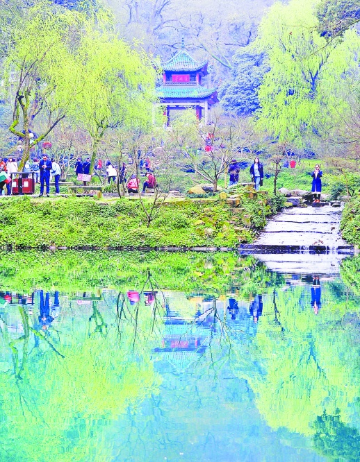 ▲3月17日,长沙市岳麓山景区爱晚亭旁,柳枝吐出新芽。近日,随着气温上升,万物复苏,星城长沙到处一派春意盎然的景象。 湖南日报·华声在线记者 李健 摄