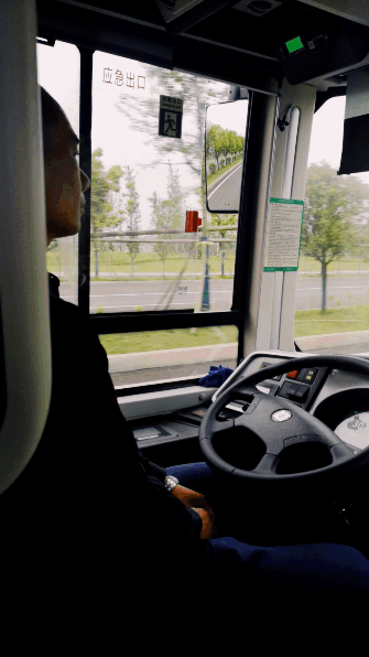 在测试场,记者一行现场体验了一把酷炫的无人公交。