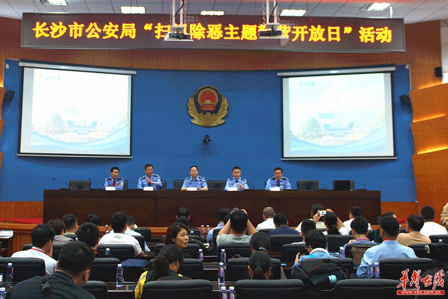 华声在线4月26日讯(记者 张鼎峰 通讯员 刘彬) 扫黑民警的工作日常是怎样?长沙扫黑除恶战果如何?4月26日,长沙市公安局举行了“扫黑除恶主题警营开放日”活动,市人大代表、政协委员、市民群众和通过网络招募的网友代表共100余人参加了此次活动。