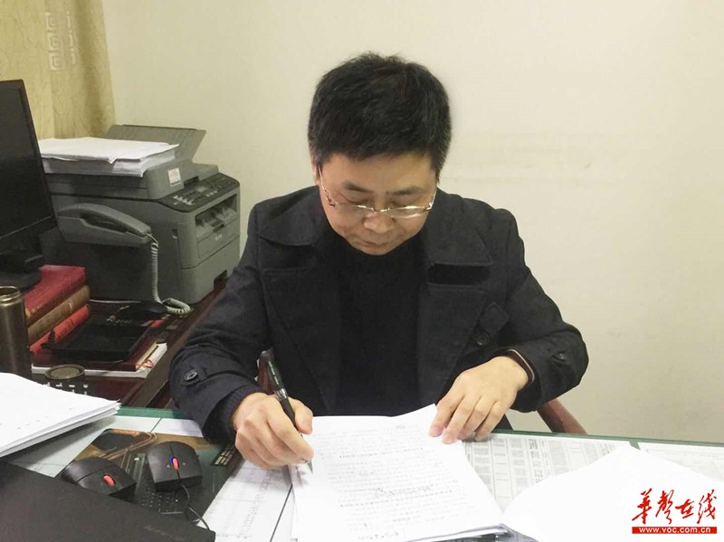 龙峰在修改文稿。