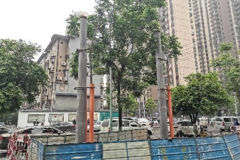 “之前我们没有收到过小区前坪要修电线杆的通知,而且施工方入场也没有跟我们沟通,更没有经过业主同意。”小区物业负责人表示,小区前坪属于小区公共用地,4月20日前坪突然就建起了2根电线杆。物业发现后立即联系社区、业委会跟施工方协调,但施工方出具的文件是复印件,且没有政府部门公章,而社区也未收到任何通知。“当天,施工方同意暂时停工,没想到今天一大早又来了。”