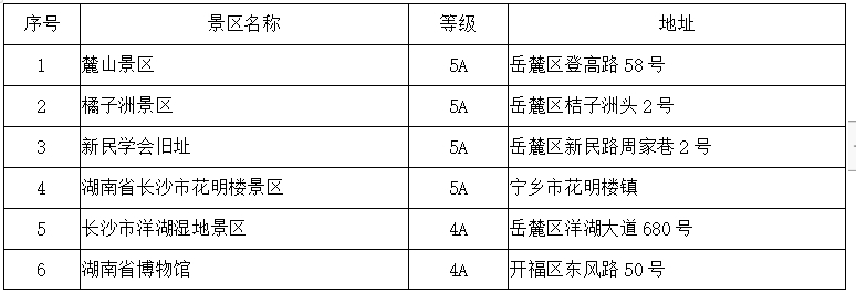 长沙市首道门票免费景区名单
