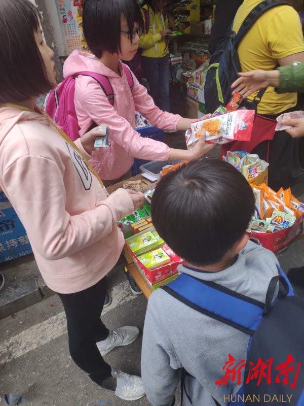 4月12日下午4时,长沙市开福区营盘路小学外,放学后的喧闹声逐渐打破宁静。听到熟悉的下课铃声,离校门不足200米的便利店店主赶忙将摆满零食的小方桌从屋内抬出,仔细清点着手中用于找零的五角、一元人民币。