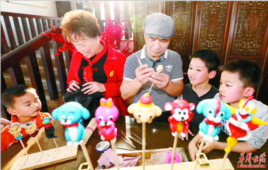 4月7日,民间艺人在表演非遗传统项目捏面人。当天,是清明节小长假的最后一天,衡阳市奇石博物馆举行非遗项目展演活动,吸引了众多市民前来参观。据了解,该馆每周日晚都会免费推出非遗展演,推广与传承非遗传统文化。 林伊涵 摄