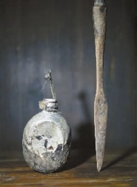 谢红军家至今保存着无名红军战士的两件遗物——水壶和梭镖。