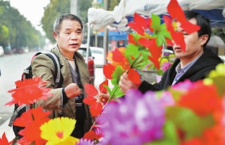 3月27日,东安县大庙口镇,谢红军在集市上购买清明节祭奠用品。