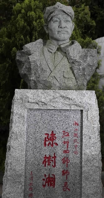 雕像和军旗,是陈树湘烈士牺牲80周年的纪念日时,矗立于此的。