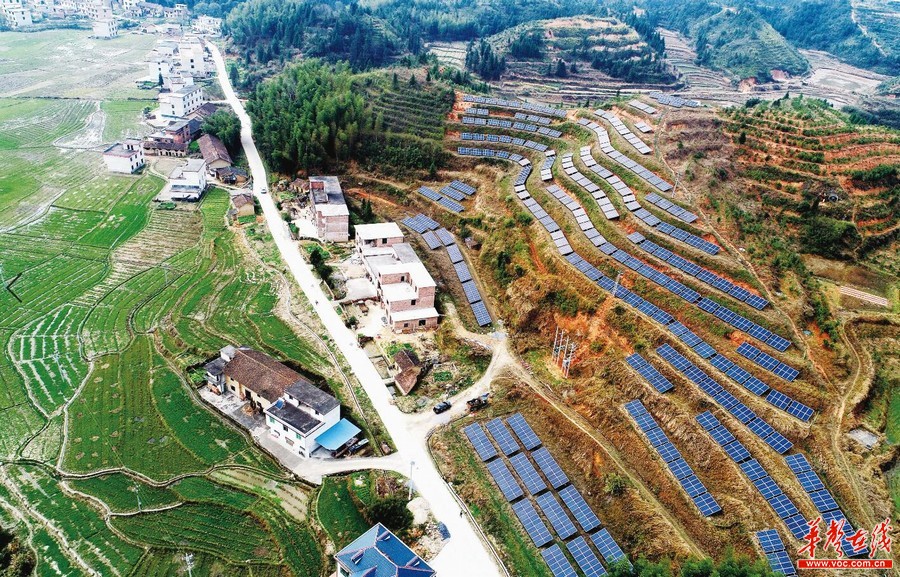 3月30日,俯瞰资兴市州门司镇白筱村光伏扶贫电站。从2017年6月并网发电至今,该电站累计为白筱、水南等9个贫困村集体带来近76万元的收益。截至目前,郴州市442个光伏扶贫项目已发电3700万度,收入3630万元,全部用于公益岗位扶贫、小型公益事业扶贫、奖励补助扶贫。钟镭 朱孝荣 摄影报道