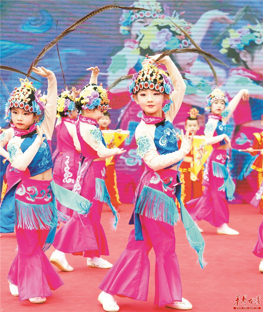 5月29日,长沙市开福区营盘路小学,学生在表演节目《梨园花盛开》。当天,开福区营盘路小学、清水塘小学联合举行“同心共筑中国梦,争做文明好队员”“六一”文艺汇演,展示学生的才艺和活力。 湖南日报·华声在线记者 傅聪 通讯员 彭越 摄影报道