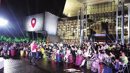 “博物馆之夜”活动中,由音乐家与观众共同完成的“鼓动湘江”音乐演出正在进行。国际博物馆日活动“全民参与”的宗旨和初心由此体现。