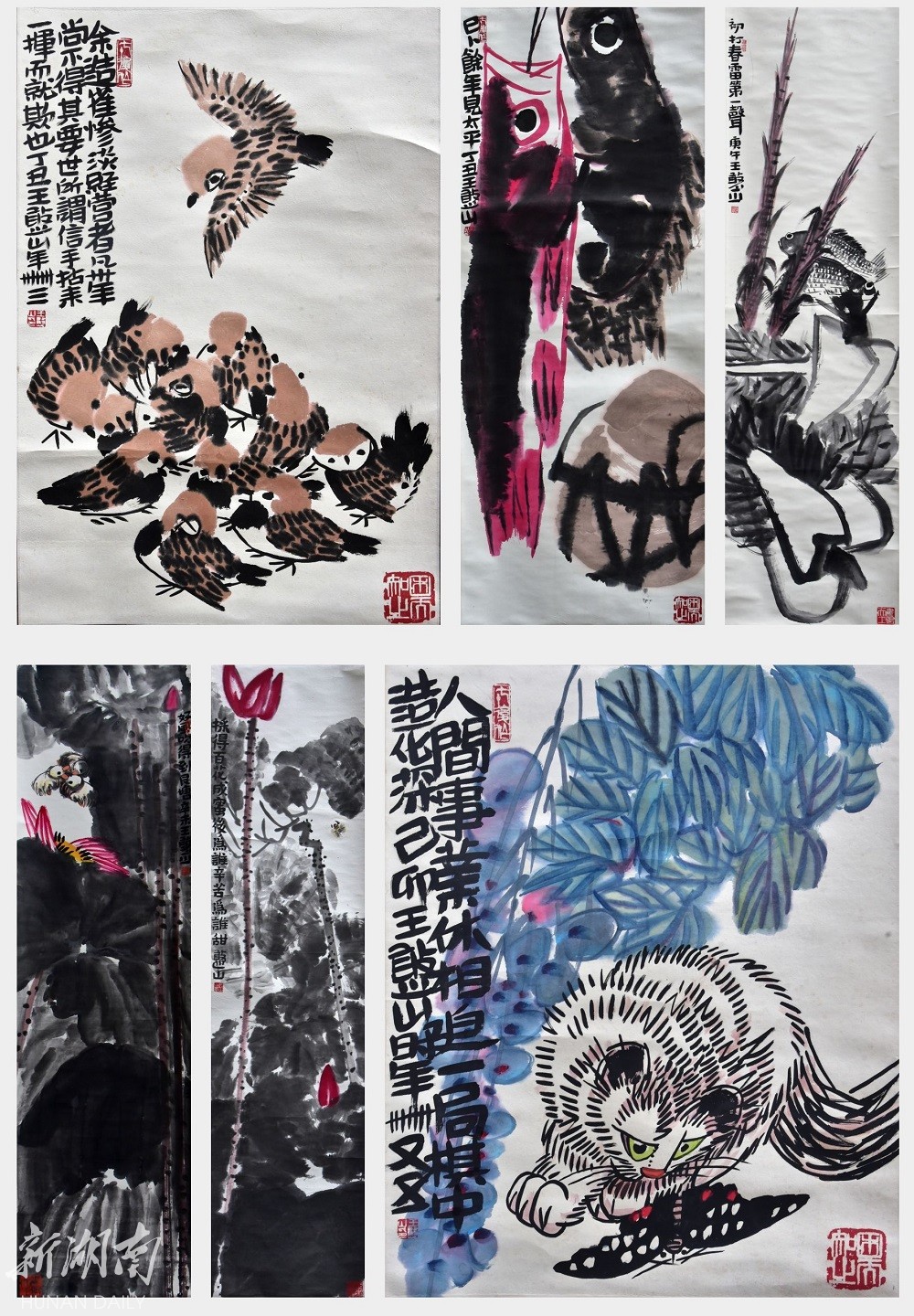 王憨山,原名嘘云,著名国画大师。湖南双峰人,师从潘天寿,高希舜;被人称作“其诗如白石,字似金农,画则崇尚周颐论词的‘重、拙、大’的审美法度,磅礴大气,不阿流俗、独辟蹊径。”其作品《群雀图》入选“百年中国画展”;作品《大吉图》《麻雀图》入选中学美术教材。故宫博物院、中国美术馆、深圳美术馆、中央美院、广州美院、浙江美术馆、国家画院、齐白石纪念馆等单位均收藏其作品。中央电视台、人民日报、中国书画报、湖南日报、湖南电视台、《美术》、《国画家》、《荣宝斋》等媒体均专题介绍其生平及艺术成就。