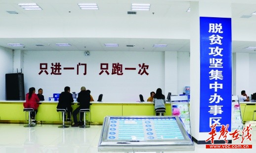 2018年8月,永顺县脱贫攻坚战指挥部成立集中办事区,扶贫、教体、卫计、住建、民政、发改、农业、人社、交通、水利、经信、林业、信访等与脱贫攻坚相关的职能部门,派驻干部进驻集中办事区。脱贫攻坚一线干部群众来县里办理扶贫事项,只进一扇门,最多跑一次。而对脱贫攻坚热点、难点问题和相关代办事项实行一站式收集办理,限时办结。
