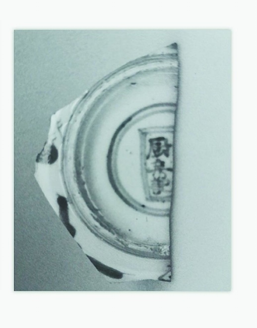 老司城遗址宫殿生活区东南部紧邻排水沟的台地上,一处结构不规则、开间小的房屋遗迹很可能是厨房。这里面出土了一件底部印有“厨房记”的青花瓷碗,在老司城遗址出土的数百件带底款的瓷片中,只有这一件的底款文字为“厨房记”。湖南省文物考古研究所 供图
