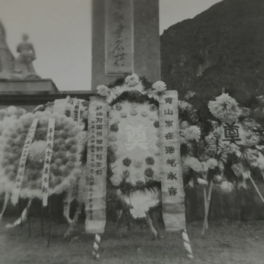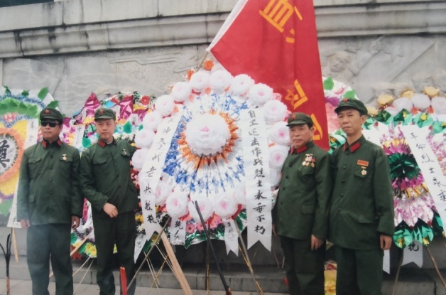 扫墓开始了,军乐声中,连长和副指导员将花圈安放在纪念碑前。花圈是用相思树枝扎起来的,树枝上缀满了我和战士们亲手扎的白的、红的、黄的小花,白色的缎带上是我撰写的挽联: