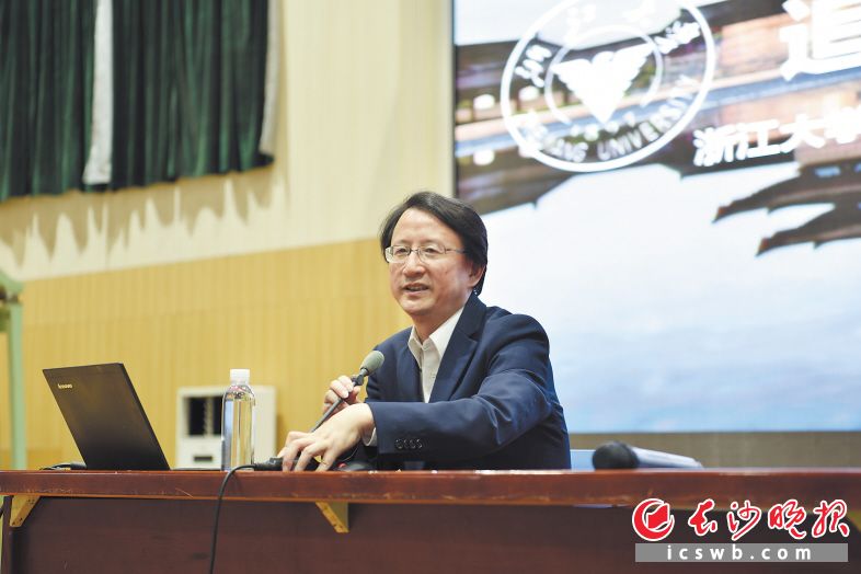 中国科学院院士、浙江大学校长吴朝晖在长郡中学讲座。均为长沙晚报通讯员 乔梦平