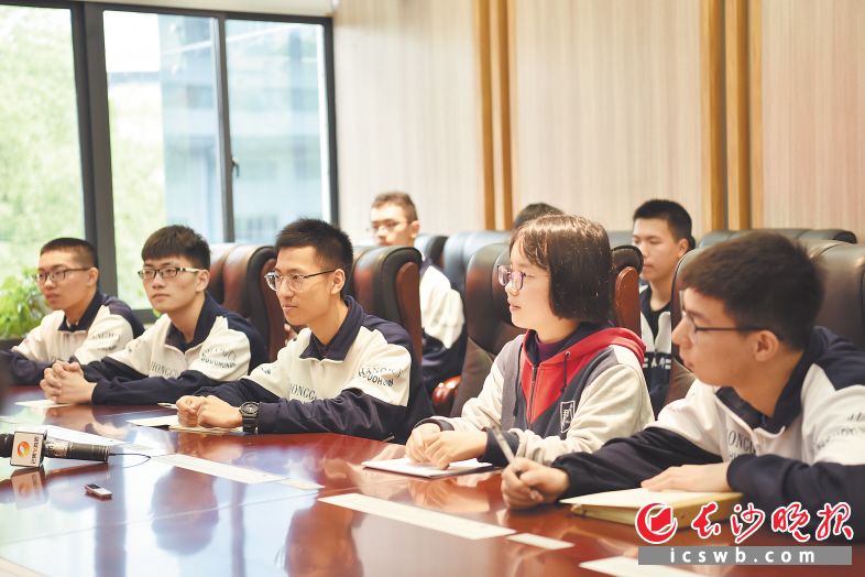 中国科学院院士、浙江大学校长吴朝晖在长郡中学与高三学生代表座谈。