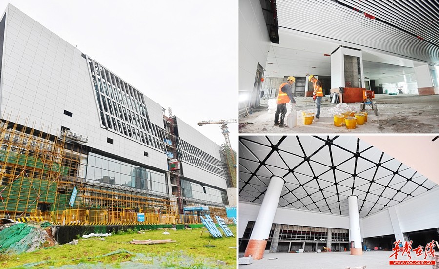 5月6日,长沙汽车南站综合交通枢纽项目工地,正在进行外部装修的主站房(图①)以及装修基本完工的候车厅(图②)和售票大厅(图③)。该项目按国家一级客运站标准规划、建设、运营,总用地217亩,于2015年11月底动工。目前,包括主站房、备班楼、到站楼在内的主体工程已完工,正在全力推进内外部装修。预计下半年竣工并投入试运营。