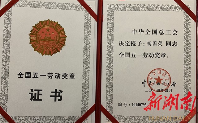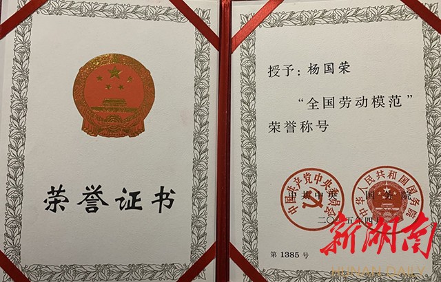 杨国荣曾多次被省市县评为“爱心邮路先进个人”和“职业道德标兵”,2013年被评为“全国职工职业道德建设先进个人”,2014年被全国总工会授予“全国五一劳动奖章”,2015年获得中国工人阶级最高奖励“全国劳动模范”称号。