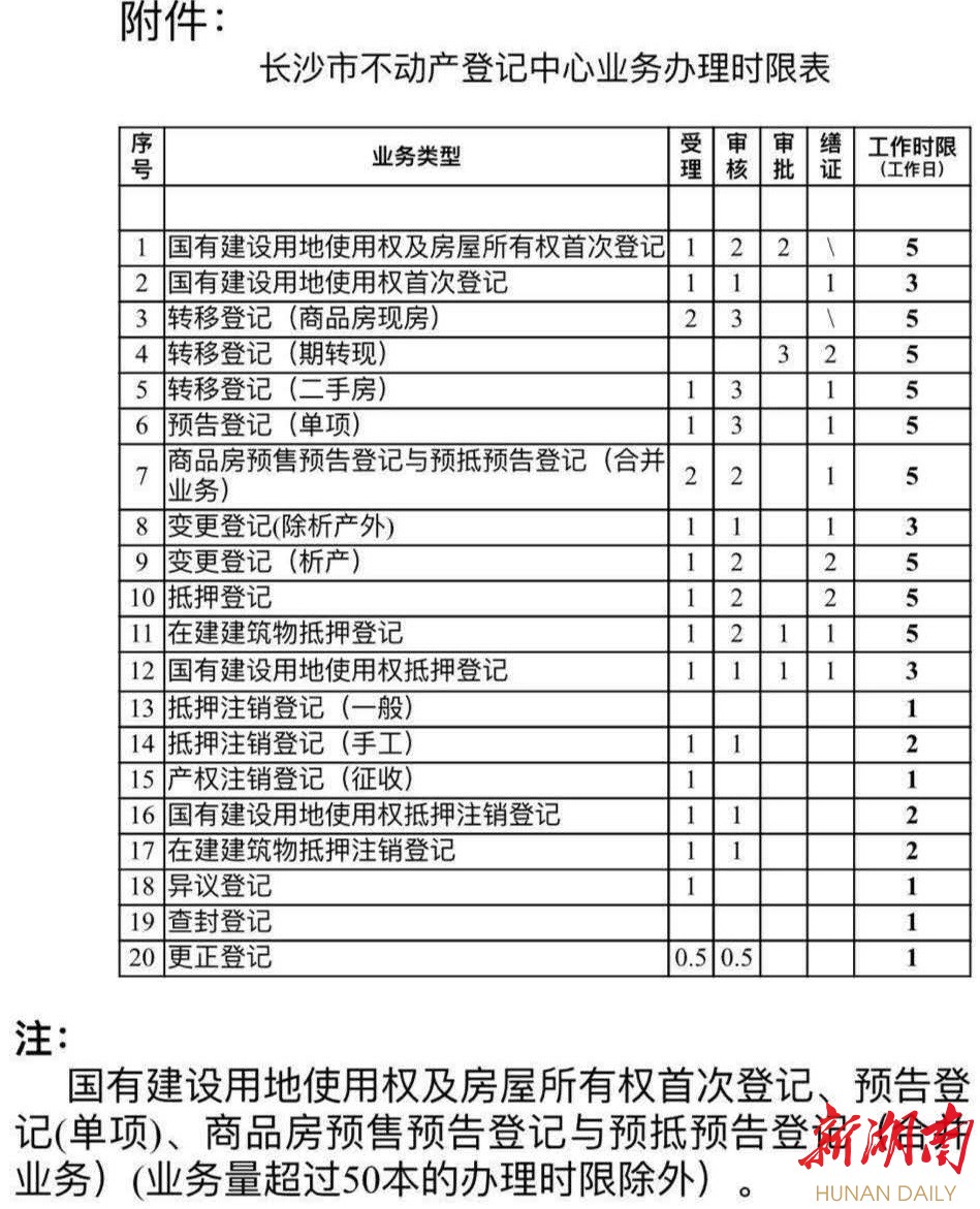 华声在线6月28日讯(湖南日报·华声在线记者 张云龙)今日,记者从长沙市不动产登记中心了解到,该中心宣告将于7月1日起再次开启业务办理提速。其中,商品房现房转移登记的业务办理时限,由原来的10个工作日缩短为5个工作日。至此,长沙不动产登记中心20项登记业务的办理,时间均将压缩到5个工作日以内。
