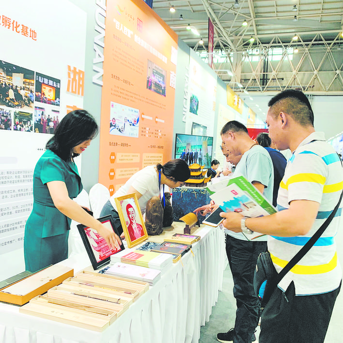 岳阳日报讯(记者 侯 勇 通讯员 蒋辰)围绕岳阳楼呈现的陶艺、剪纸、《岳阳楼记》竹刻,以及手作岳州笔……日前,一件件集聚岳阳文化符号的文创作品,在第二届全国创业就业服务展示交流活动上展出。我市青年创客的作品,让来自全国各地的创客们大饱眼福。