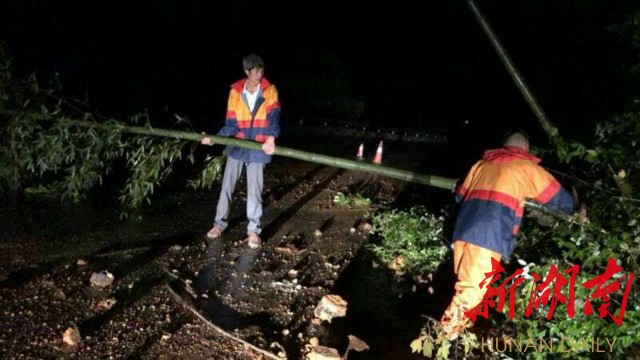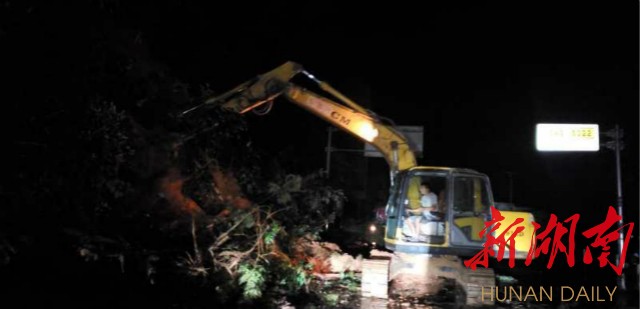 公路沿线公管站人员第一时间赶到现场,调集挖掘机和铲车等机械设备及时清理塌方,用钢锯和砍刀将横倒在公路上的树砍断、清理,用锄头和铁铲清理出路面沙土。险情处治也得到了当地乡镇的支持,七江镇分管交通的政协工联委主任刘玉等也组织人员现场参与应急抢险。一直奋战到凌晨1点多,基本将阻碍通行的倒塌树、竹子及土方等清理完毕,共清理阻碍交通障碍及塌方二十多处。清理土方三百多方。