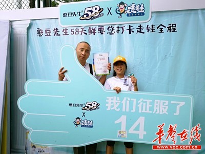 “爸爸,我终于到了最后的打卡点!”十一点多,七岁的陈昱达终于到达“憨豆58天鲜”能量补给站最后一站,他兴奋的尖叫,拿出了打卡券,领取盐津铺子为他准备的礼物,一边开心地吃着“憨豆58天鲜”小口袋面包。陈爸爸说,虽然下着雨,儿子还是坚持到每一个能量补充点打卡。走娃活动既锻炼了孩子的意志力,也是倡导低碳出行,让孩子放下电子产品多接触自然,意义非凡。