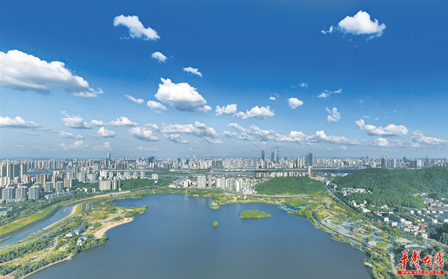 7月30日,蓝天白云下的长沙,清澈透亮,一碧万顷。当天,长沙蔚蓝的天空里飘起了朵朵形态各异的白云,格外美丽迷人。