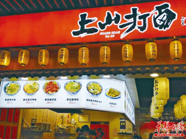 7月29日,上山打卤店头公示的餐品价格较该品牌外卖平台少2元。实习生 彭格欣 记者 朱蓉 摄