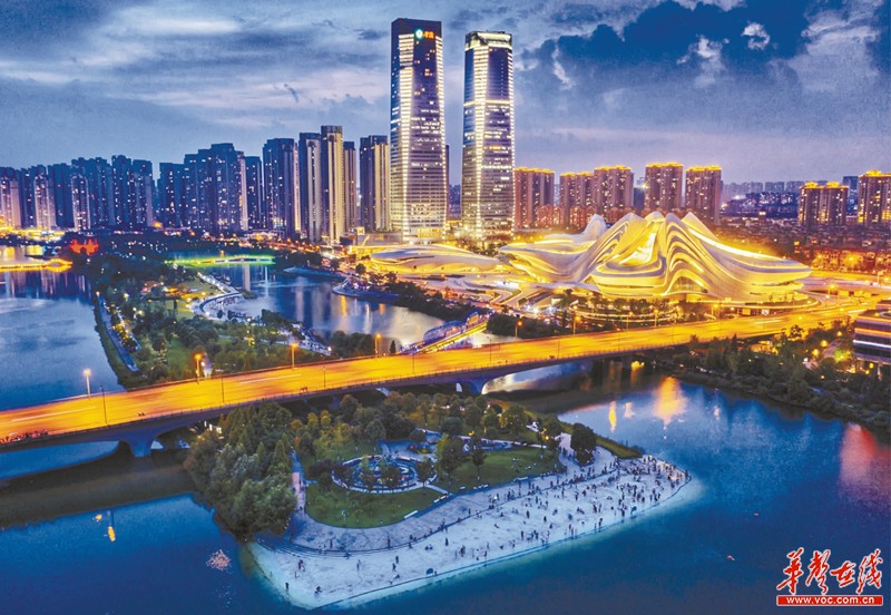 7月22日傍晚,在灯光的映照下,长沙梅溪湖国际文化艺术中心成为一座气势恢弘的“金色殿堂”。该中心建成后不仅成为了长沙的地标性建筑,还通过举办各种大型歌舞剧、音乐剧、交响乐等高雅艺术活动,成为了省会的艺术殿堂。 湖南日报·华声在线记者 唐俊 摄