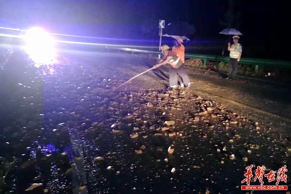 7月13日晚,G106线水口镇桐车湾路段K1936+400米处发生路基上边坡塌方,塌落下来的石块、泥土和杂树占据了大半幅路面。接到消息后,炎陵县交通事务中心立即启动防汛抗洪抢险应急预案,调集装载机等设备组织抢险。经过近三个小时紧张有序的抢险,于晚8时40分恢复正常通行。此次夜间塌方未造成任何人员和车辆的损失。