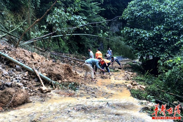炎陵县交通事务中心养护和路政人员奋战在抢险第一线。
