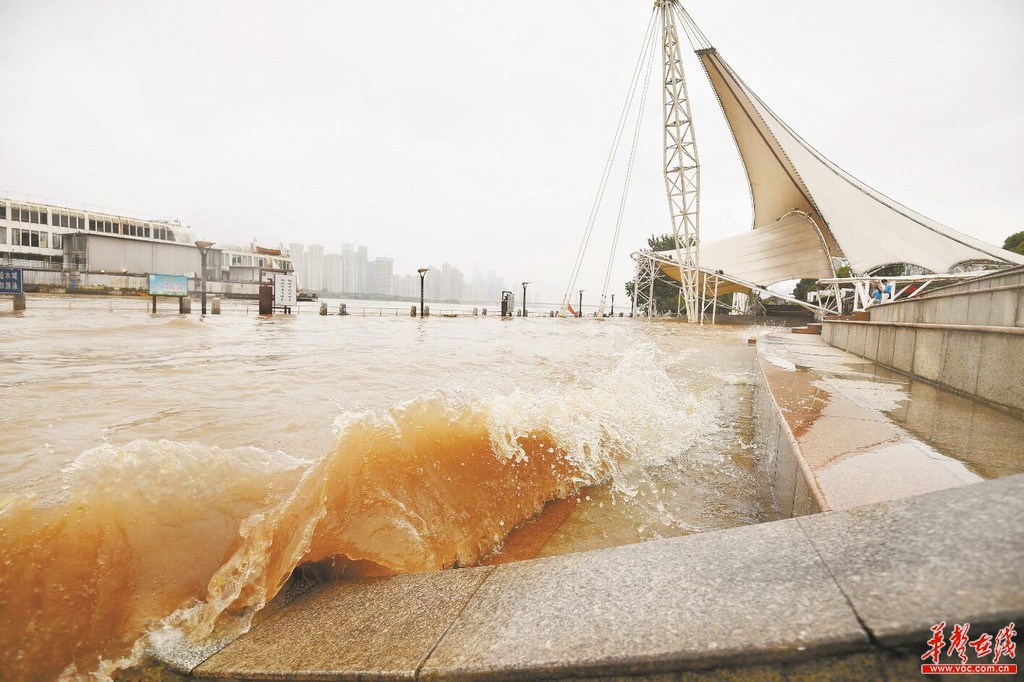 7月15日,湘江长沙风帆广场段,洪水再次将亲水平台淹没。14日凌晨,湘江长沙站短暂退出警戒水位,之后开始复涨,15日17时,水位达到36.78米,比14日8时上涨0.78米。