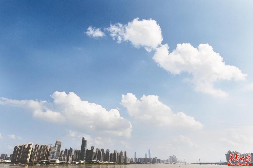 7月15日,长沙天气晴好,湘江上空蓝天白云美如画。本月11日以来的强降雨过程趋于结束。