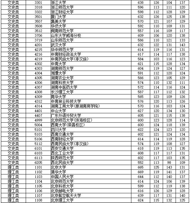 华声在线7月15日讯(三湘都市报·华声在线记者 黄京)今日凌晨,湖南省2019年普通高校招生国家专项计划平行一志愿投档分数线出炉。从公布的分数线来看,清华大学以文科654分、理科669分,位居投档线“榜首”。紧随其后的是北京大学,文科652分,理科665分。另外,中国人民大学、复旦大学等高校投档线都位居前列。省内高校中,中南大学投档线最高,文科621分、理科613分。湖南大学理科604分,湖南师范大学文科604分、理科576分,湘潭大学文科591分、理科551分,长沙理工大学文科587分,理科557分,投档线靠前。