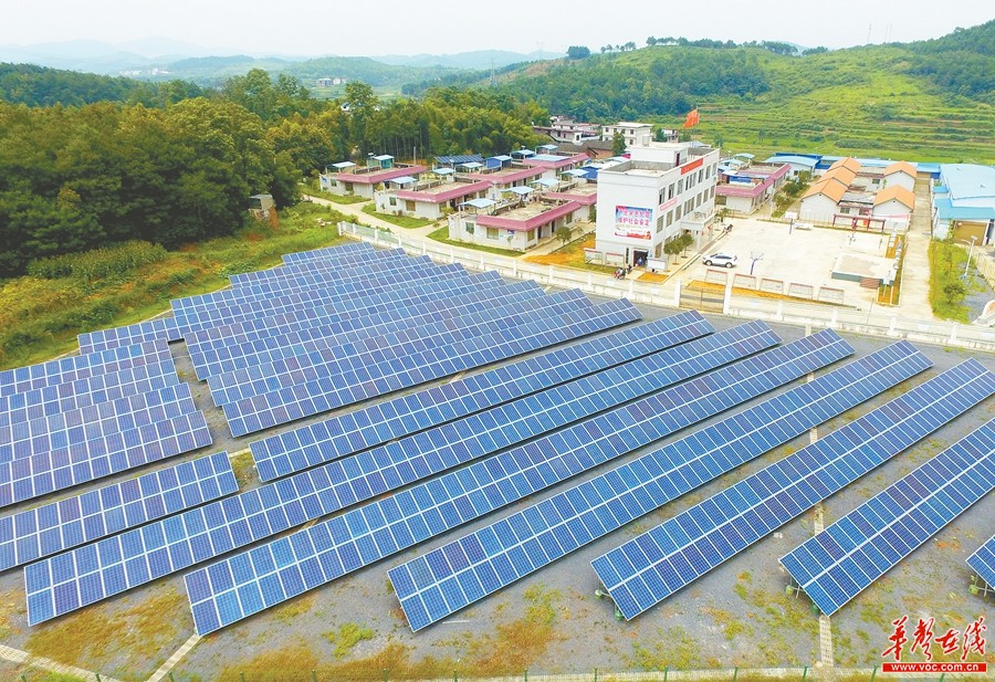 7月11日,邵阳县白仓镇塘代村光伏扶贫电站,一排排太阳能电池板整齐排列。近几年,该县先后在各贫困村新建了96个光伏扶贫电站,装机容量达6600多千瓦,每年给贫困村带来收入300余万元。