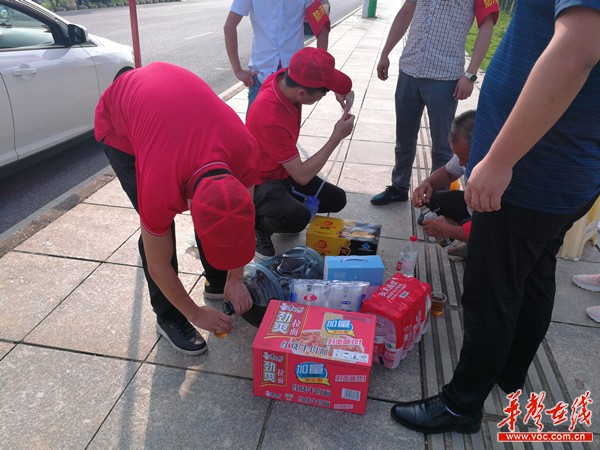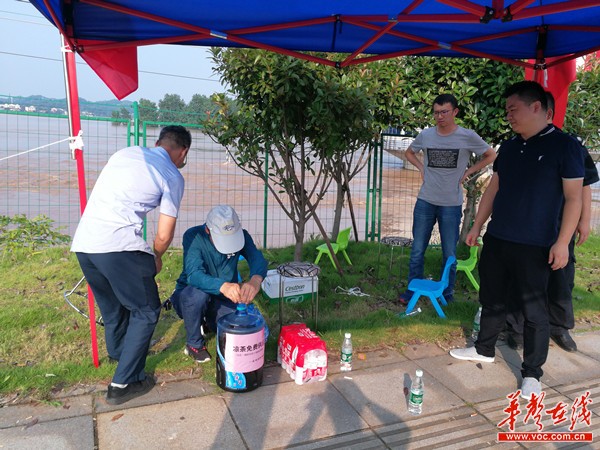 了解到守护大堤工作人员非常辛苦,在月亮岛街道经营餐厅的村民鲁存西、肖伟带领员工将现熬凉茶、酸奶、矿泉水等物资送到湘江大堤(黄田段、腾飞段)和马桥河驻守点,对在大堤上连续奋战的干部、村民进行慰问。