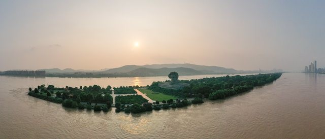 7月10日18时许,洪水正在过境长沙,橘子洲景区亲水平台已经完全没入江水之中。当日22时47分,湘江长沙站迎来洪峰,水位达38.35米。 湖南日报·华声在线记者 傅聪 徐行 摄影报道