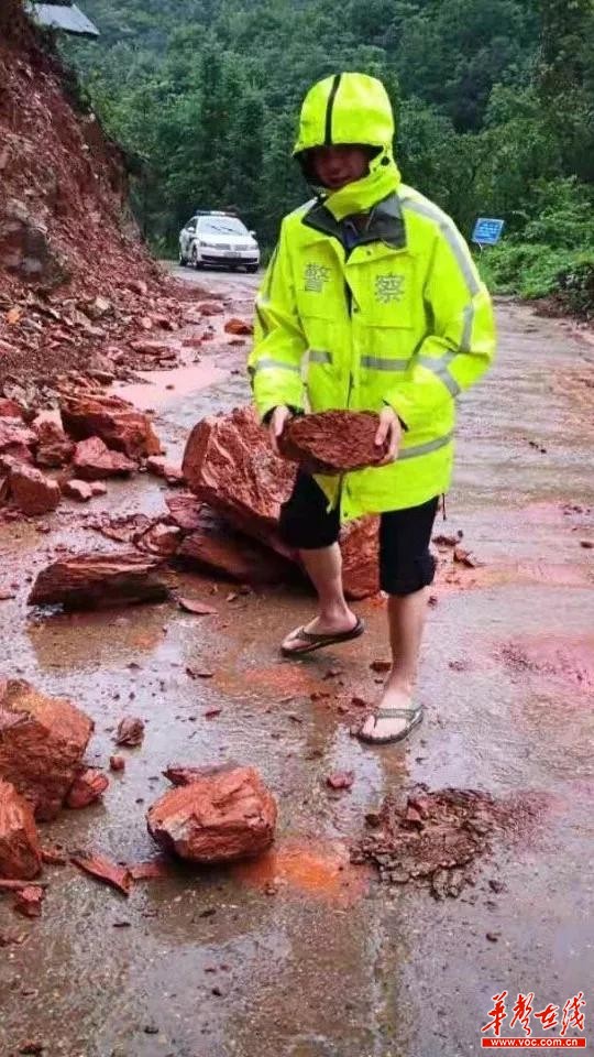 7月6日以来,连续涌现民警在大雨中抢险疏导交通的先进事迹。特别是在泉南高速塌方事故中,高警局衡阳支队石鼓大队民警冒着暴雨,立即组织对障碍路段采取隔离措施,立即封闭行车道和应急车道,并安排巡逻车在后方预警,提醒后方来车注意安全。因处置及时妥当,没有造成进一步的损失,此次塌方落石并未造成人员伤亡。